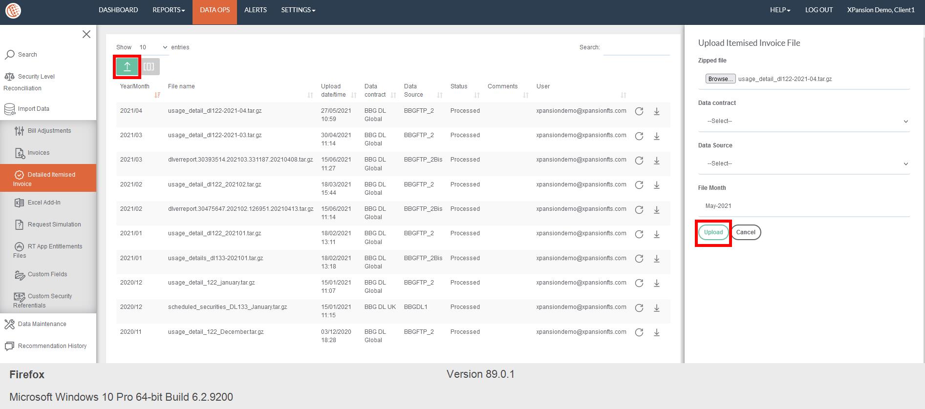●Go to the menu ‘DATA OPS’ > ‘Import Data > Detailed itemised invoice.