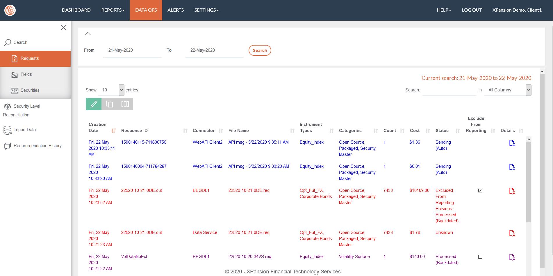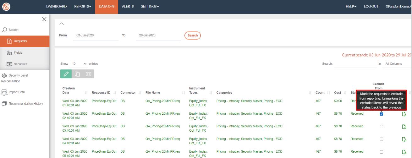 This feature empowers the user to split the requests retrieved between different Data Connectors (defined in purpose = ‘Active’) so Xmon can compute additional analytics like cost allocation by systems. The association of requests to a given Data connector is defined based on the request filename prefix.