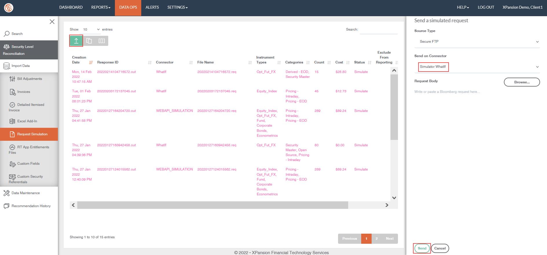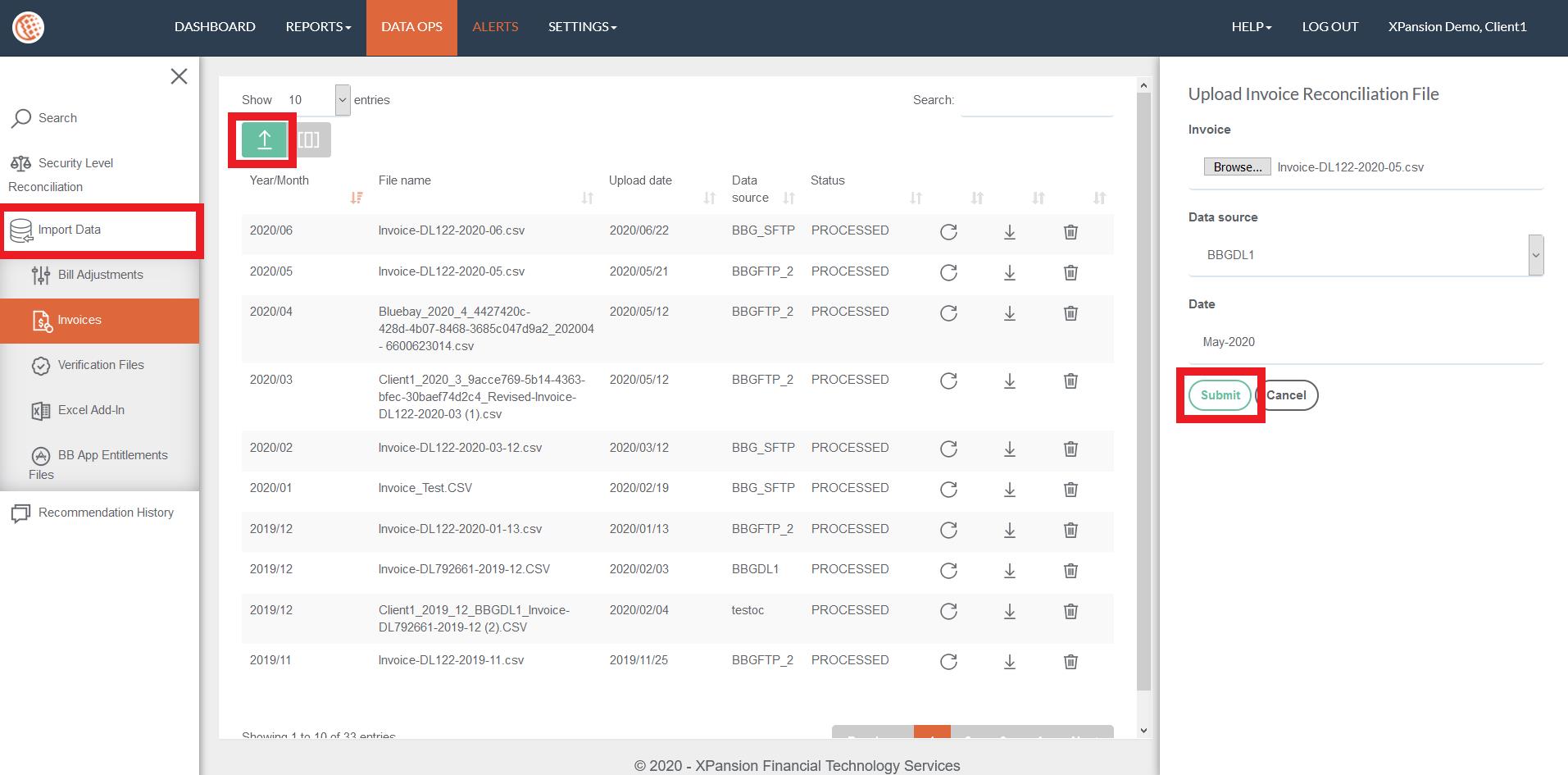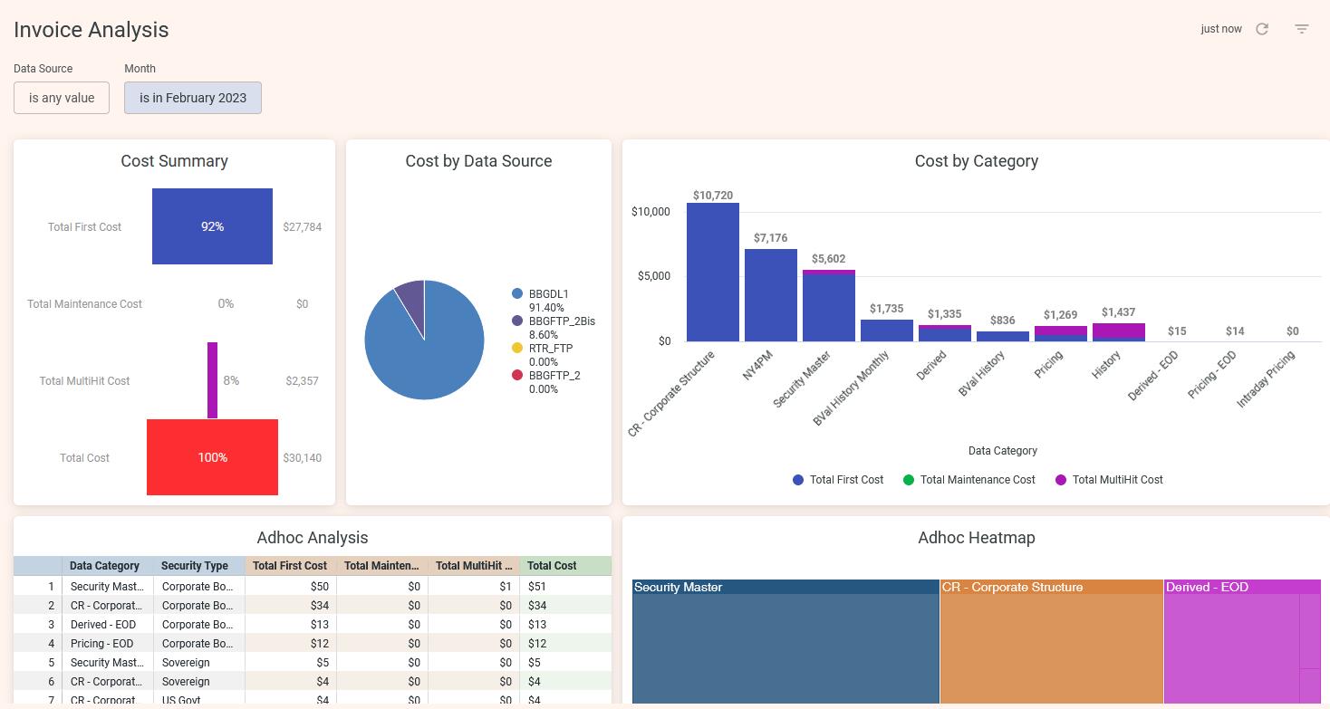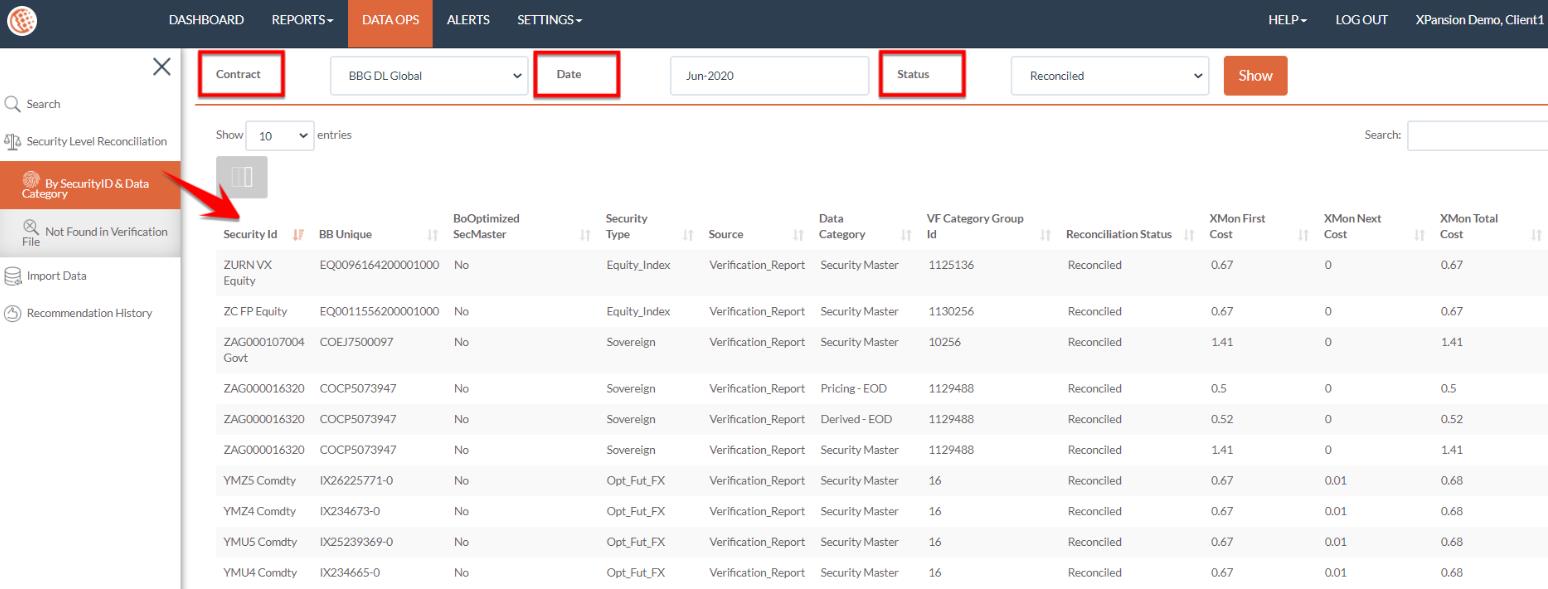 The invoice that has been provided from Data partner – (Bloomberg) should be uploaded in the Xmon environment in order to enable invoice reconciliation report. The invoice lists all the categories and security types requested and their costs in a table statement.