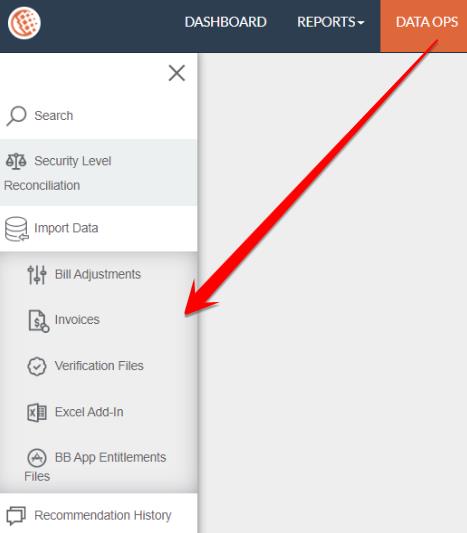 To upload an invoice, navigate to the menu ‘DATA OPS’ > ‘IMPORT DATA’ > ‘INVOICES' and tap on the