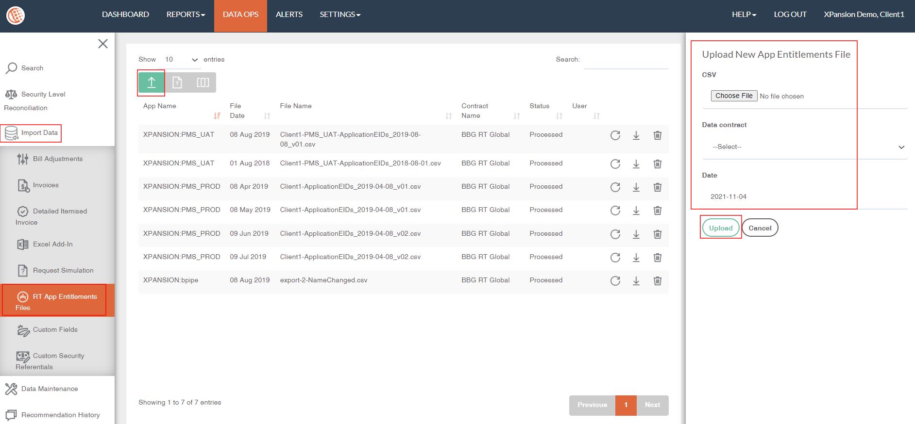 ●Then navigate to Xmon DATA OPS > Import data > BB Apps entitlements