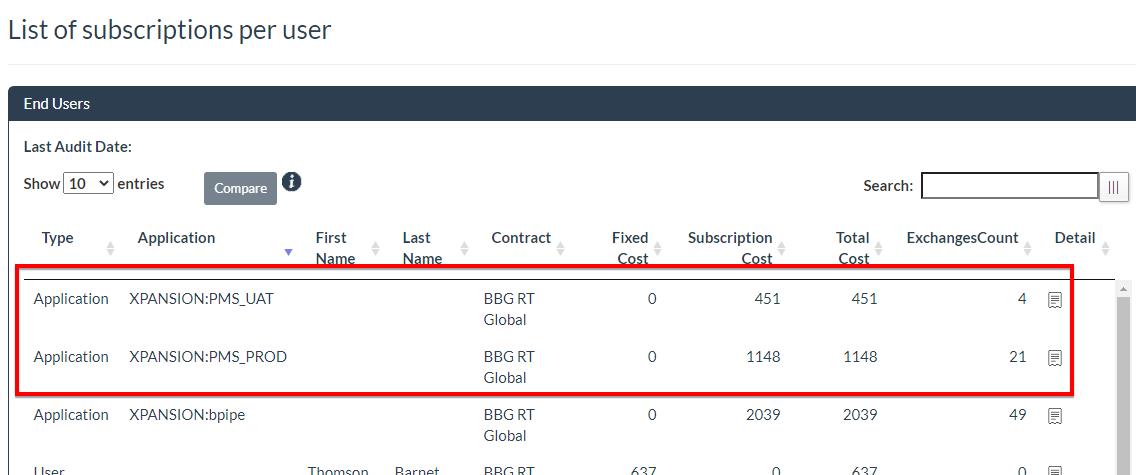 For more details on this report, please refers to the section RT Exchange Subscription Cost Report by End User
