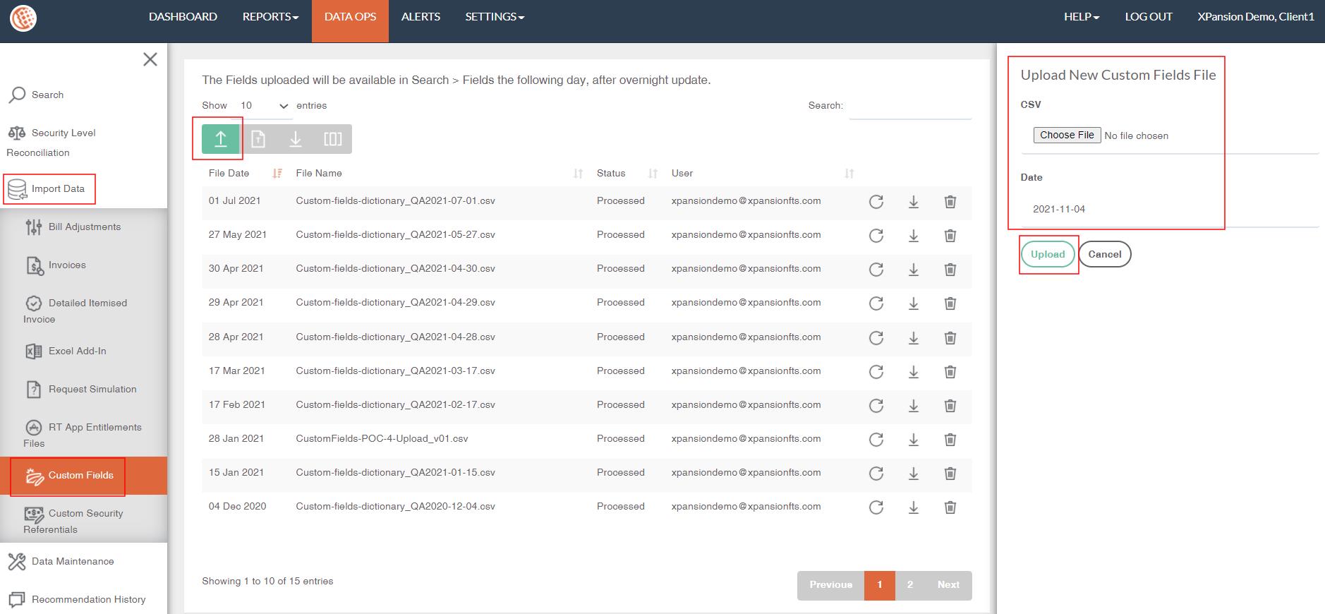 ●Navigate to DATA OPS > Import Data > Custom Fields