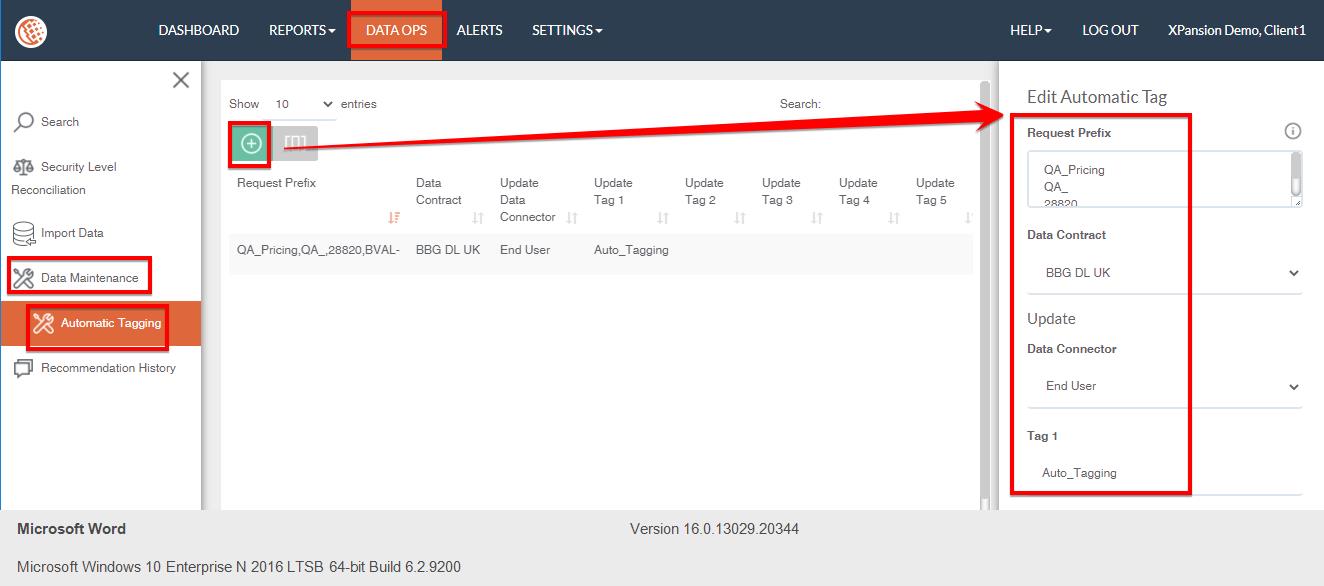 ●Navigate to the menu DATA OPS > Data Maintenance > Automatic Tagging