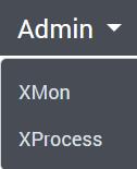 Admin section, which can be selected in the dropdown in the top left corner of the application, serves as a tool to administer Xmon: