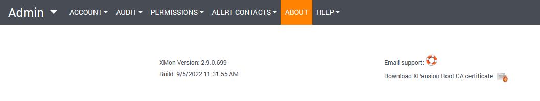 In the About section, users can e-mail Xmon support directly and download Xpansion Root CA certificate: