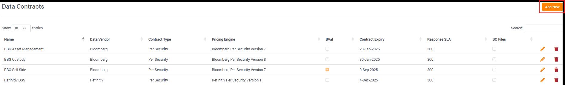To edit or delete an existing Data Source, click the pencil or bin icons respectively.