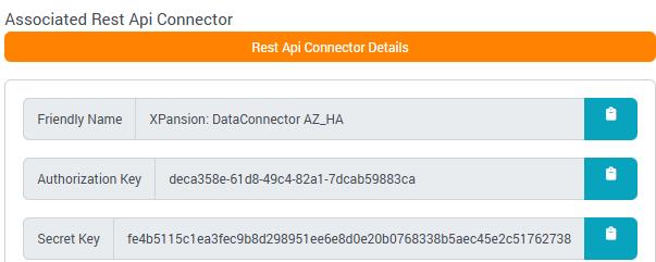 •Edit the Data Connector and select ‘Rest Api Connector Details’ to view the newly created credentials.