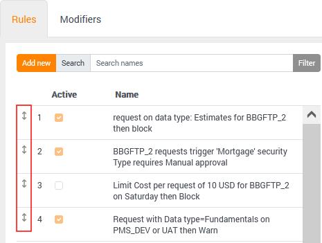 Once new rules are defined, they are added at the bottom of the list. The order or priority in which rules are checked can be adjusted with a simple drag-and-drop.
