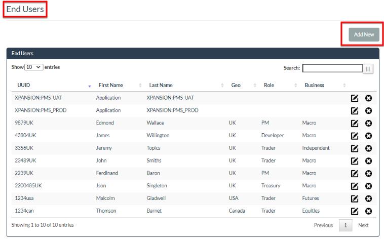 To Edit or Delete an existing END USER, simply click on the icons