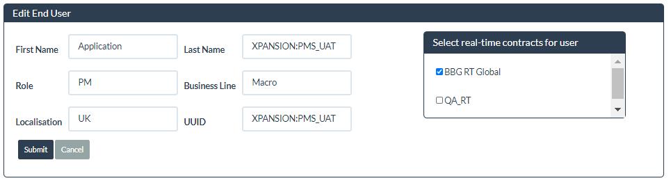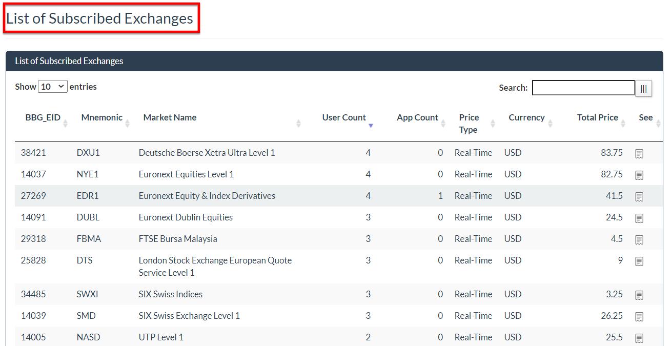 ●Once processed in the list, the Application will be created in SETTINGS > End Users automatically if need and REPORTS > SUBSCRIPTIONS menu will be updated with the details of the Real-Time Exchange Entitlements assigned to this application: