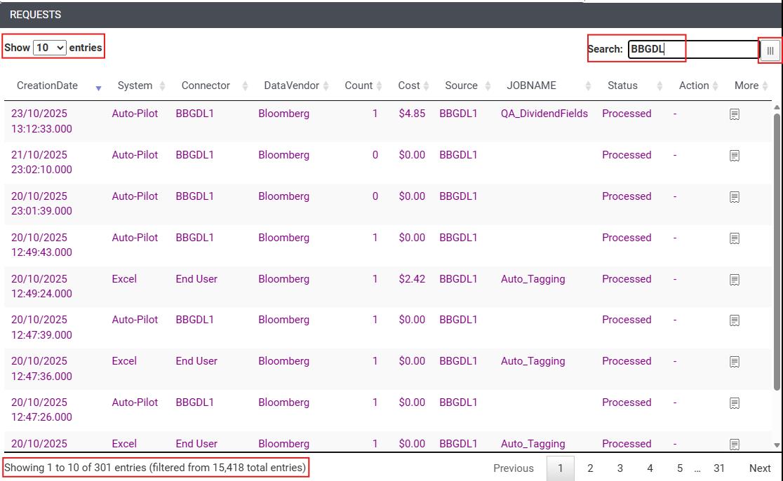 ●Results of the auto-tagging can be followed when looking at request level in the DASHBOARD menu or DATA OPS > Search > Requests
