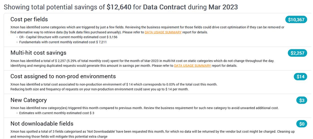 Xmon tracks reference data requests and can validate them against a defined set of cost and/or volume-based rules. Xmon’s powerful rules engine applies controls at the user level, organisation level and levels in-between, and allows proactive data access management to be implemented. Using Active mode, data analytics are computed in real-time and evaluated against access and quota rules to determine whether or not a request should authorised. Each market data request can be validated against one or multiple rules before being sent to the data provider.